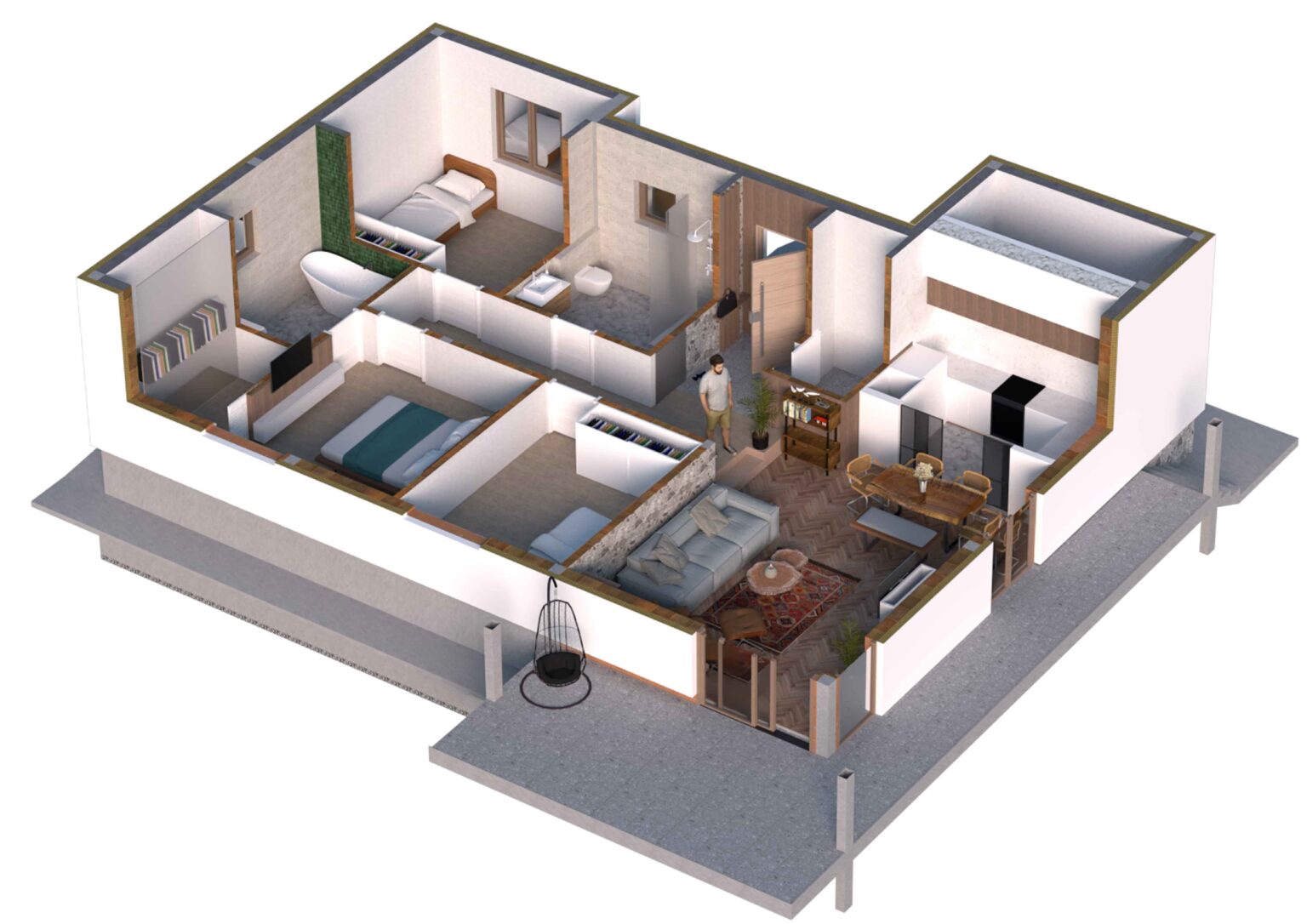 Posebna pažnja je usmerena na obezbeđivanje kompletnog komfora korisnika, povezanost sa prirodom i intimnost.