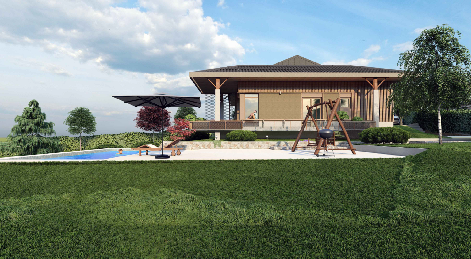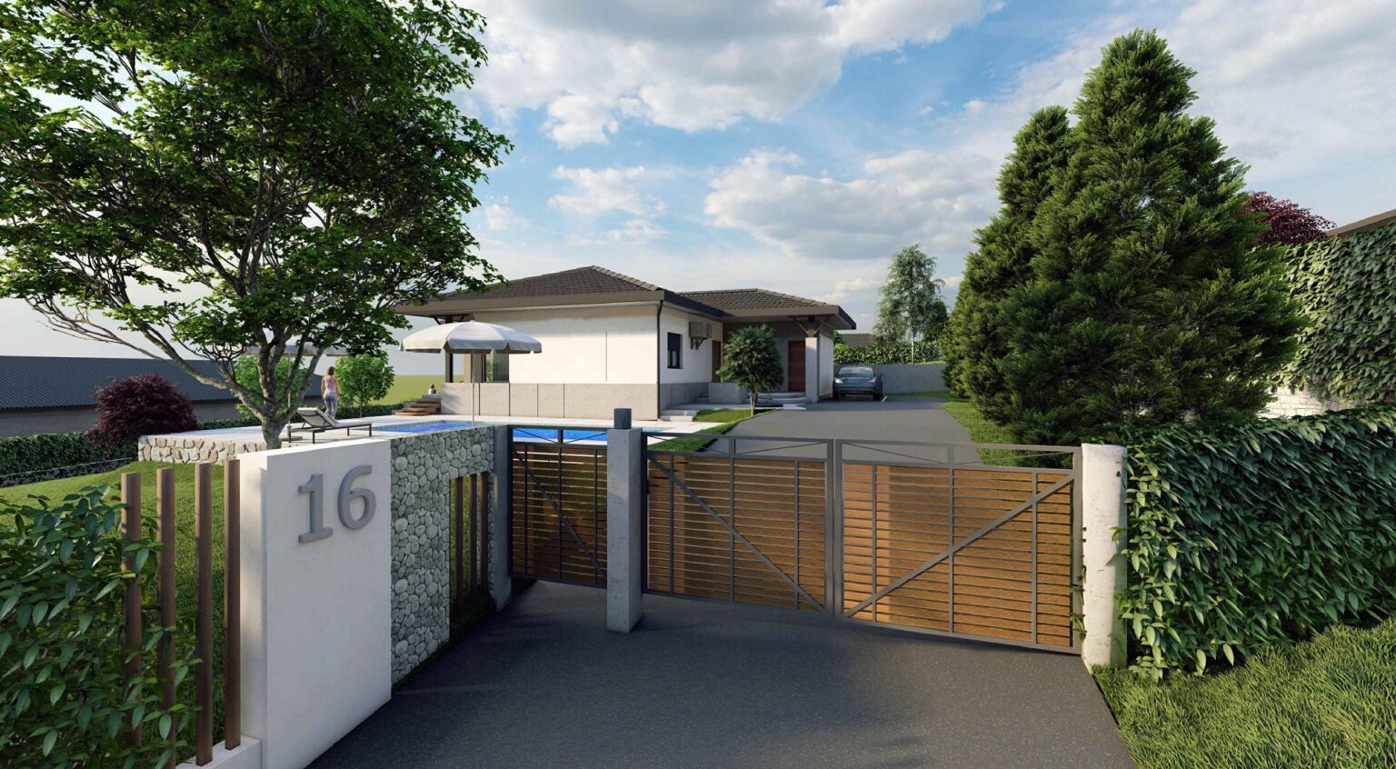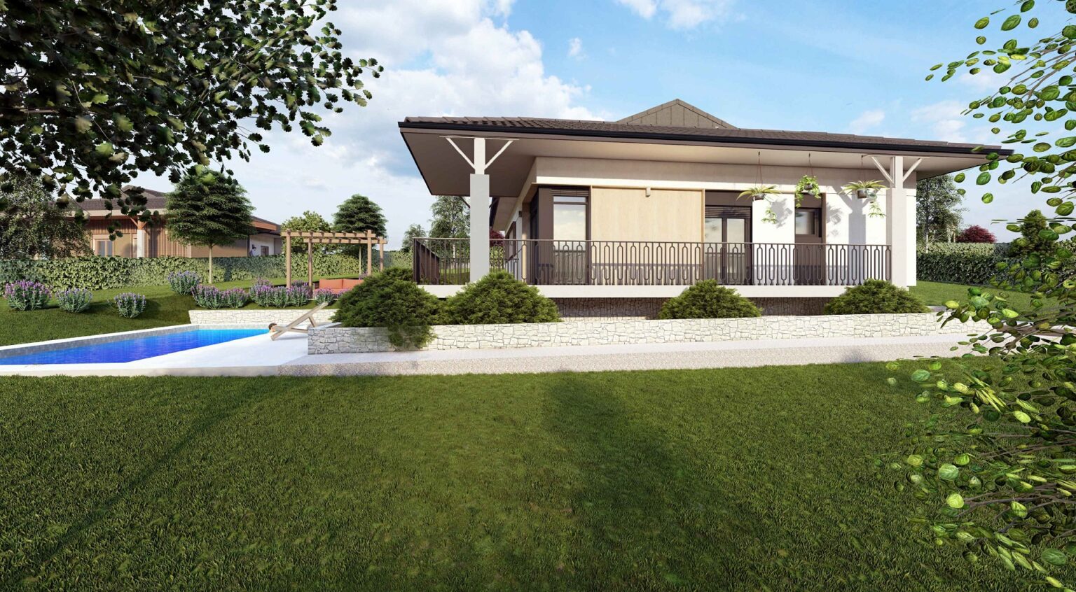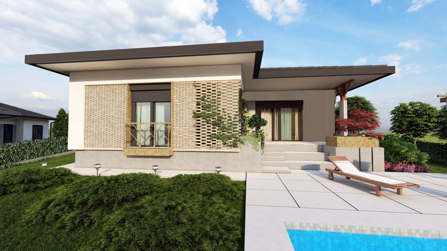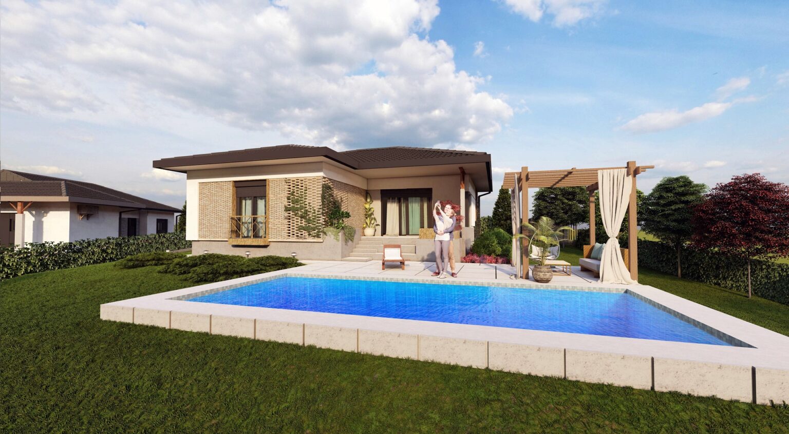 Dodatni komfor pruža bazen dimenzija 9x4 metara sa ugrađenom bazenskom opremom visoke klase, sistemom hidrolize i automatikom za jednostavno uživanje u visokom kvalitetu vode. Plaža je urađena u štampanom betonu prve klase sa protivkliznim premazima i anti-frost zaštitom.